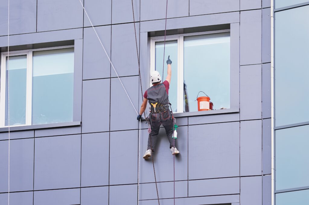 Ja, genau dafür ist Industrieklettern besonders geeignet. Mithilfe moderner Seilzugangstechnik können Arbeiten auch an komplexen Gebäudestrukturen, hohen Fassaden oder schwer erreichbaren Bereichen sicher durchgeführt werden.